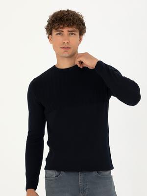 - Lacivert Slim Fit Bisiklet Yaka Triko Kazak