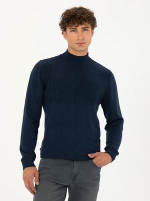 Lacivert Melanj Slim Fit Yarım Balıkçı Yaka Triko Kazak