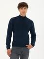 - Lacivert Melanj Slim Fit Yarım Balıkçı Yaka Triko Kazak