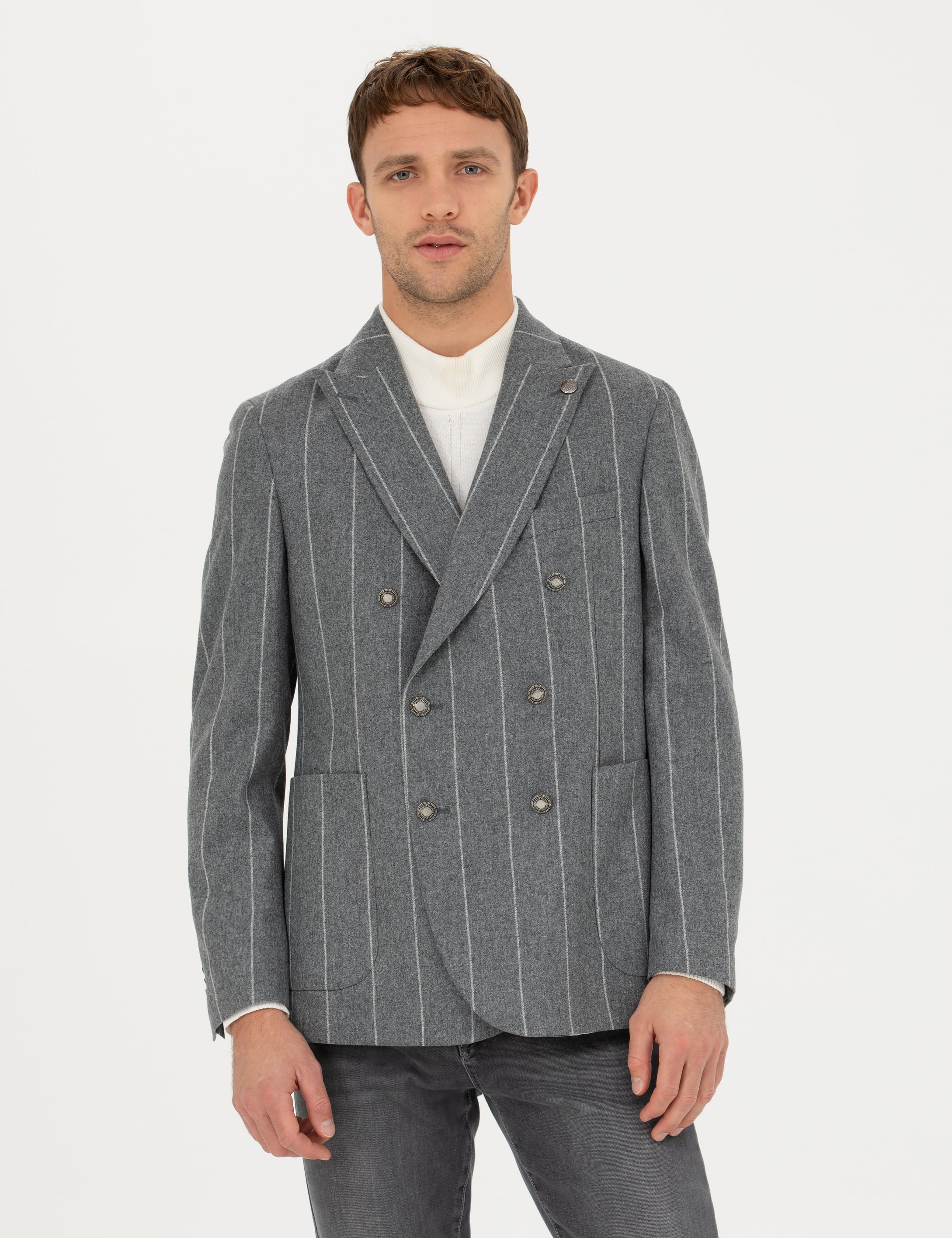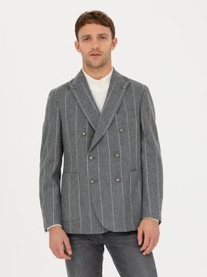 %100 Yün Kruvaze Çizgili Ceket
