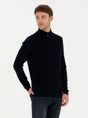 Lacivert Slim Fit Fermuarlı Dik Yaka Triko Kazak