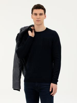Koyu Lacivert Slim Fit Bisiklet Yaka Triko Kazak