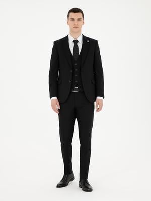 Siyah Ekstra Slim Fit Yelekli Takım Elbise