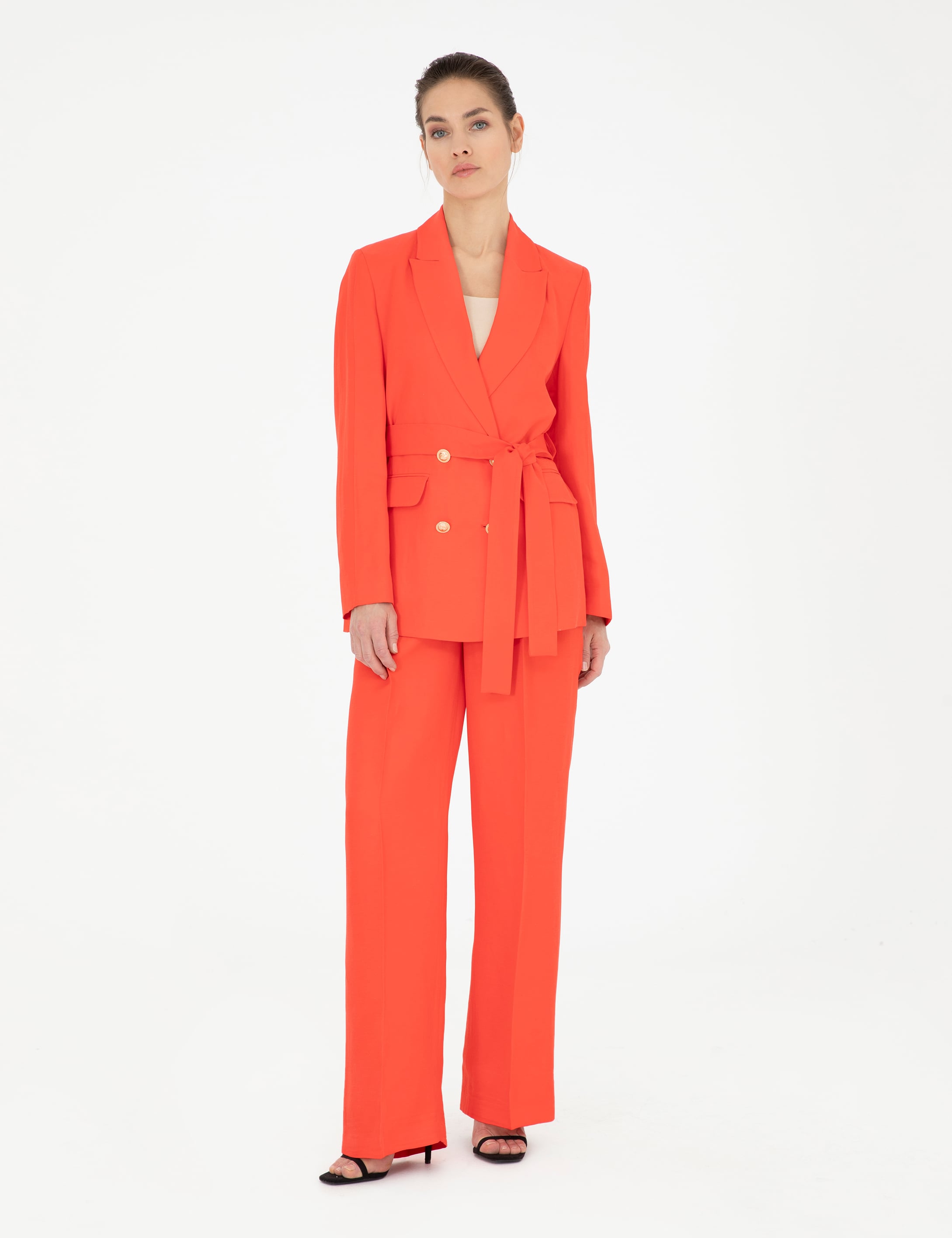Nar Çiçeği Keten Karışımlı Kumaş Pantolon