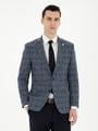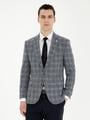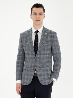 Gri Ex. Slim Fit Yün Karışımlı Ekose Ceket