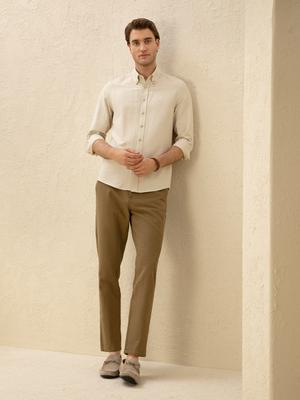 Haki Carrot Fit Keten Karışımlı Kanvas Pantolon