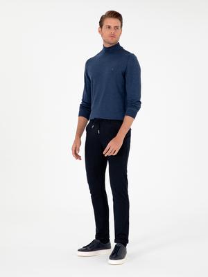 Lacivert Slim Fit Bağcıklı Kanvas Pantolon