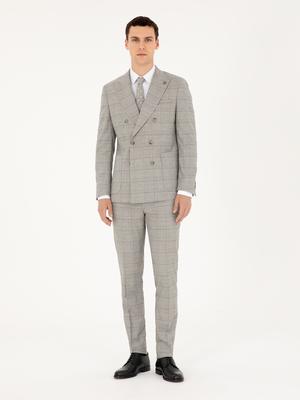 - Gri Ex. Slim Fit Ekose Kruvaze Takım Elbise