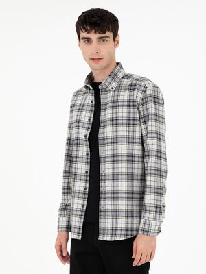 - Gri Ekose Regular Fit Uzun Kollu Gömlek