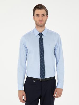 Koyu Mavi Parlak Saten Slim Fit Uzun Kollu Basic Gömlek