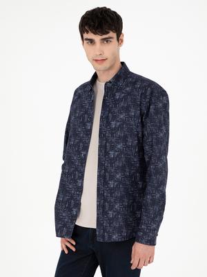 Lacivert Slim Fit Uzun Kollu Gömlek