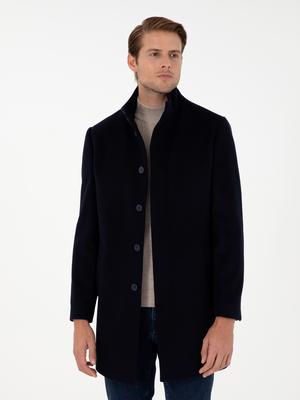 Lacivert Slim Fit Yün Karışımlı Palto