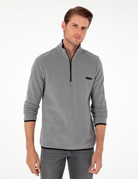 Gri Regular Fit Yarım Fermuarlı Polar Sweatshirt