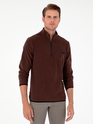 Kahverengi Regular Fit Yarım Fermuarlı Polar Sweatshirt