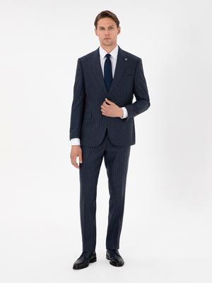 İndigo Slim Fit Çizgili Yün Karışımlı Takım Elbise