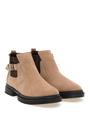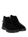 Şık ve modern tasarıma sahip botlar, şehir hayatının dinamizmine uyum sağlayan konfor ve estetiği bir arada sunar. Yumuşak dokulu süet üst yüzeyi, her adımda şık bir görünüm sunarken, elastik yan paneller hareket özgürlüğü kazandırır. Yan kısmında yer alan metal tokalı kayış detayı, modele hem stil sahibi hem de dikkat çekici bir hava katar.