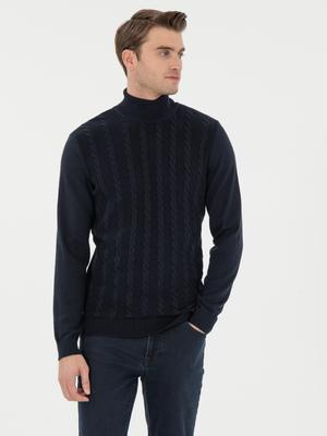 Lacivert Slim Fit Balıkçı Yaka Triko Kazak