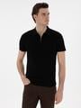 - Siyah Slim Fit Fermuarlı Polo Yaka Triko Tişört