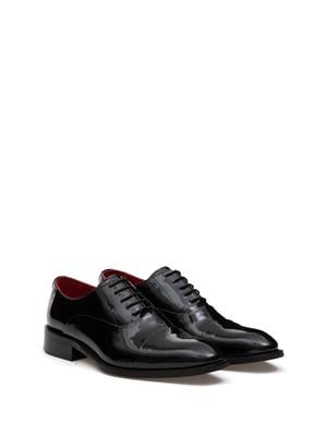 Parlak rugan derisiyle şıklığı en üst seviyeye taşıyan bu siyah klasik ayakkabı, %100 deri yapısı sayesinde hem uzun ömürlü hem de zarif bir duruş sunar. Microlight tabanı, hafifliği ile gün boyu konfor sağlarken esnek yapısıyla adımlarınızı destekler.