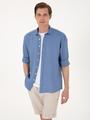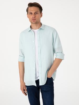 Su Yeşili %100 Keten Regular Fit Uzunkollu Gömlek