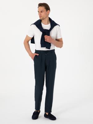 Lacivert Carrot Fit %100 Keten Beli Lastikli İpli Kanvas Pantolon
