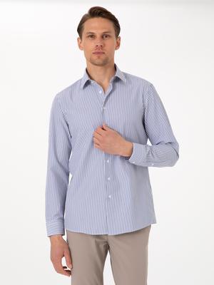 - Mavi Slim Fit Çizgili Uzun Kollu Gömlek