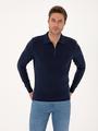 - Ekru Regular Fit Polo Yaka Fermuarlı Triko Kazak