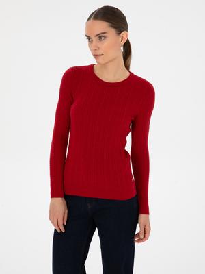Kırmızı Ex. Slim Fit Örgü Desenli Kazak