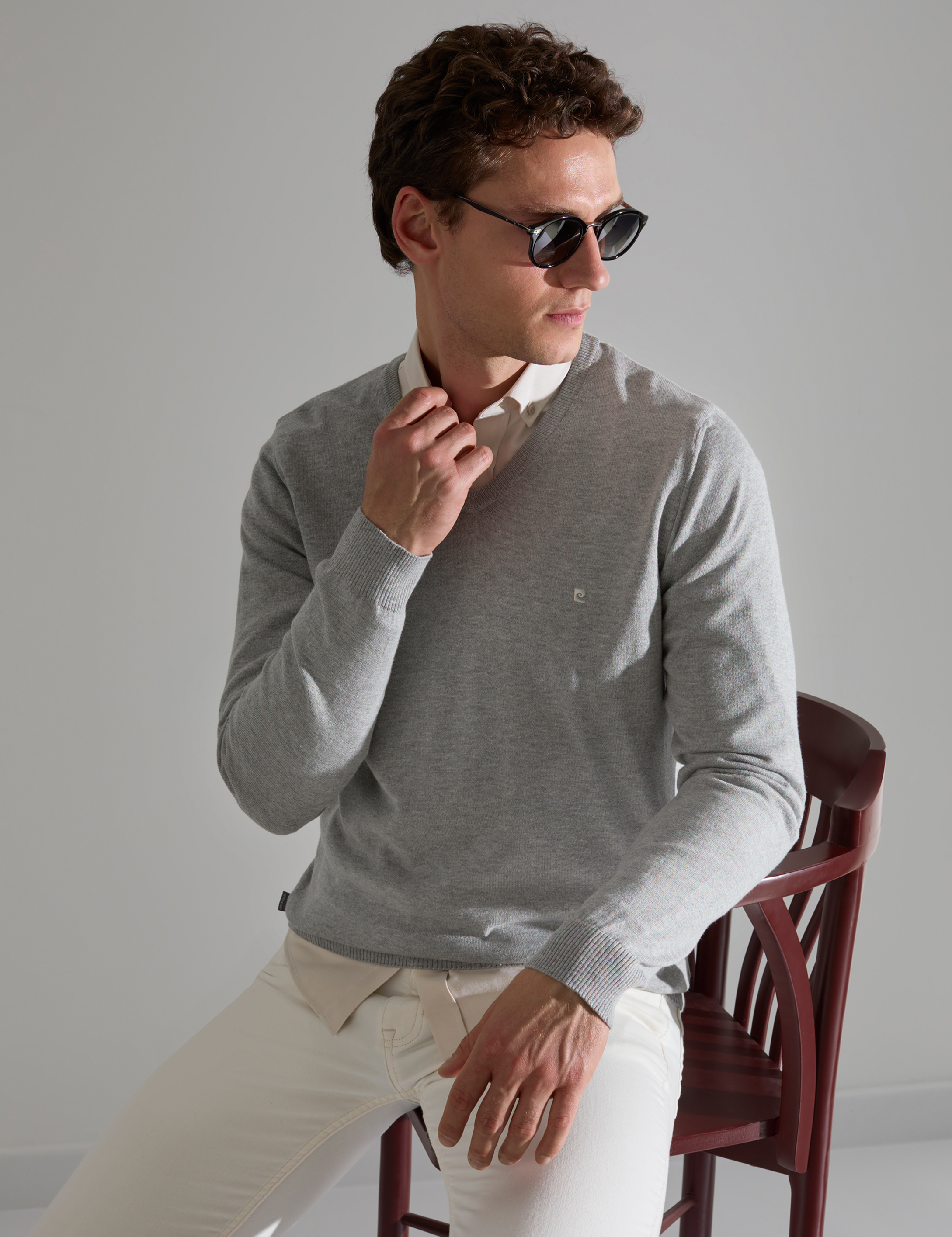 Antrasit Melanj Slim Fit V Yaka Basic Triko Kazak