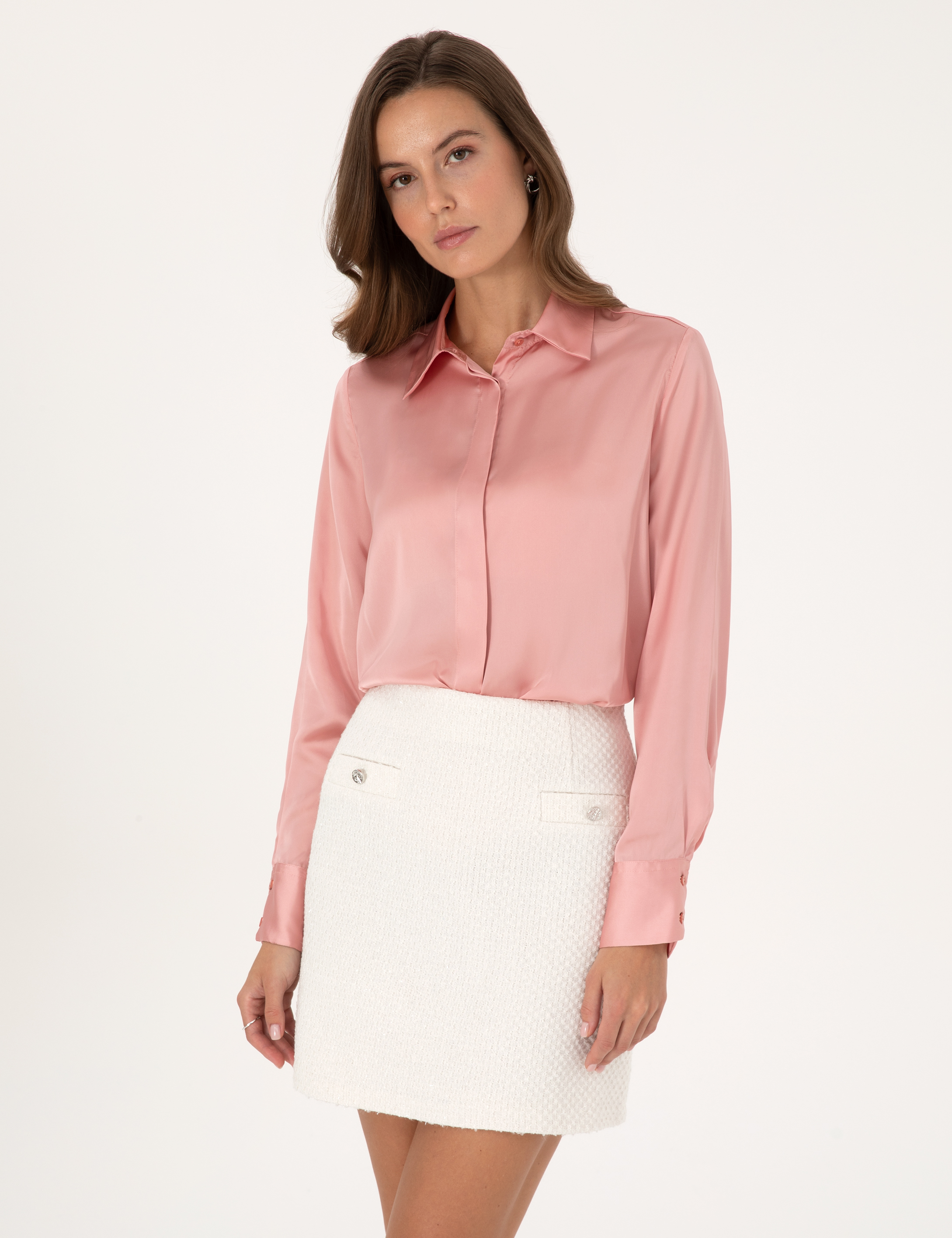 - Pudra Comfort Fit Saten Uzun Kollu Gömlek