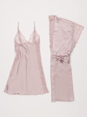 Pudra Saten Gecelik & Sabahlık Takım