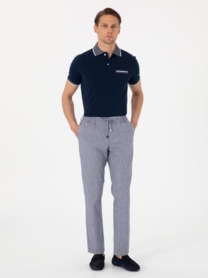 Koyu Mavi Ex. Slim Fit Keten Karışımlı Pantolon