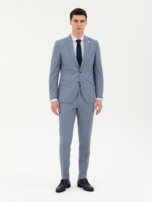 - Koyu Mavi Ex. Slim Fit %100 Yün Çizgili Takım Elbise