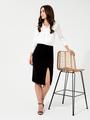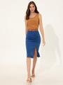 Etkileyici görünmek isteyenlere özel büzgü ve yırtmaç detayı sunan etek modelimiz gardırobunuzun en sevilen parçaları arasına girmeye adaydır.