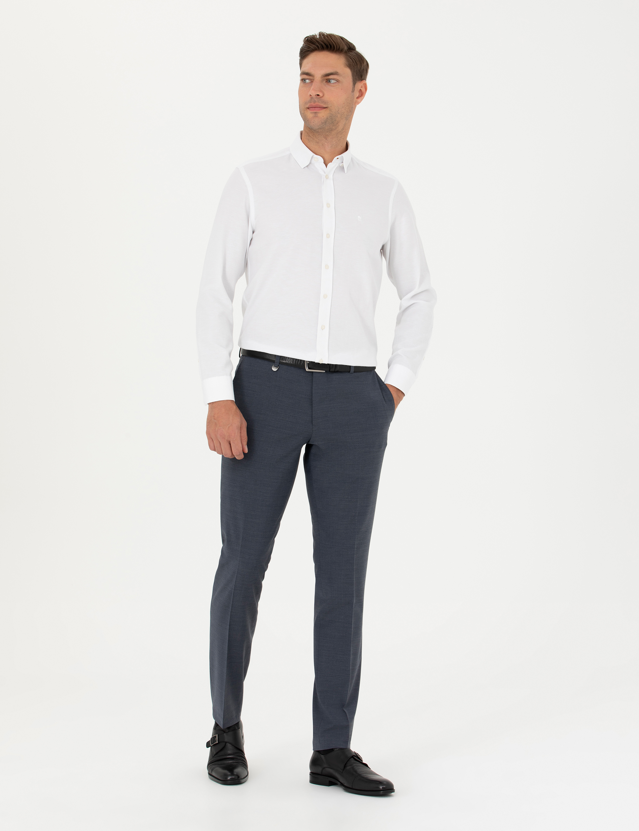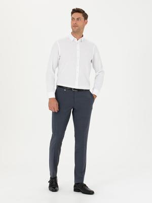 - Koyu Mavi Slim Fit Yünlü Kumaş Pantolon