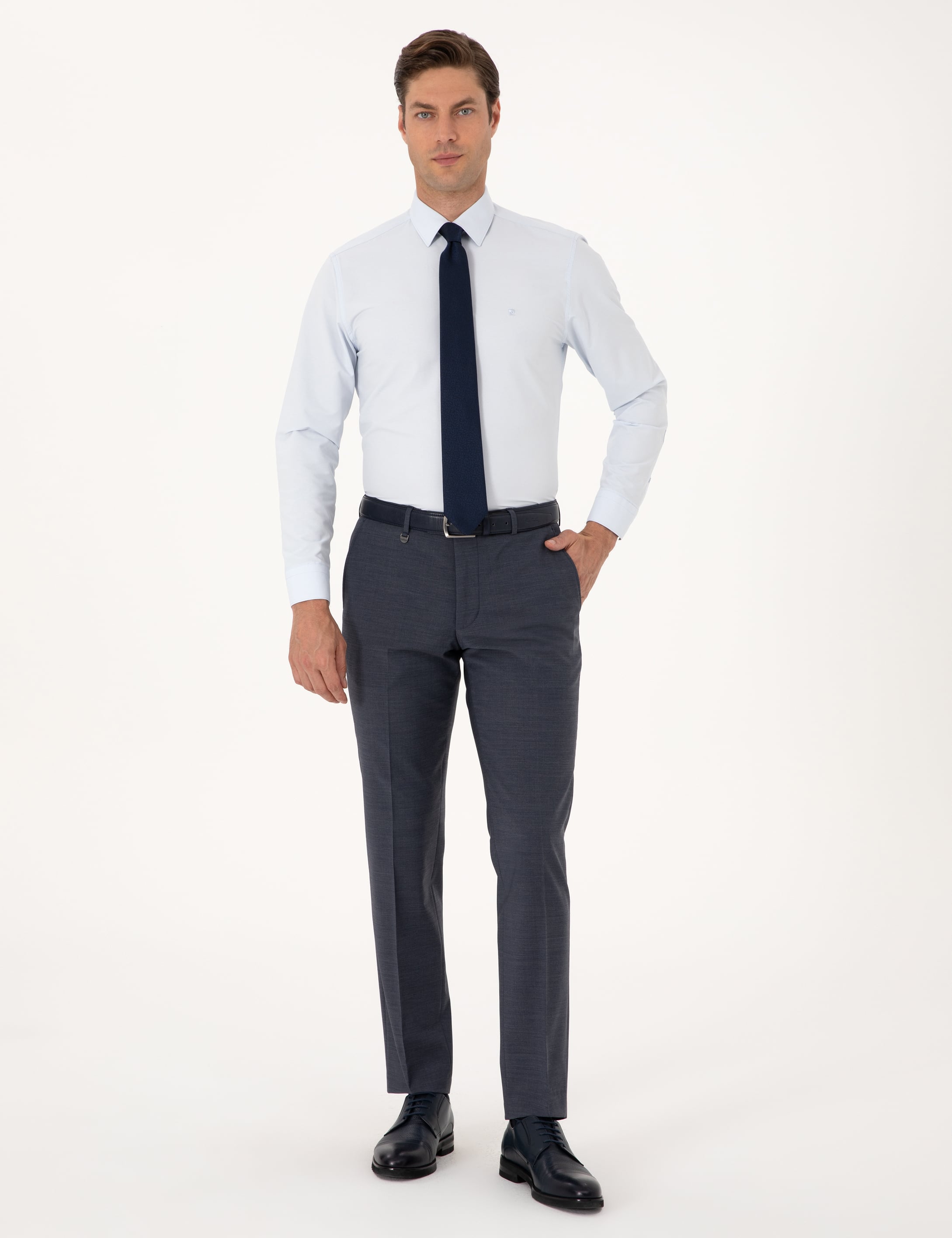 *Koyu mavi rengiyle sofistike ve modern bir görünüm sunan bu slim fit pantolon, düz formu ve özenle tasarlanmış kesimiyle stilinize zarif bir dokunuş katar. Vücudu nazikçe saran fit yapısı, gün boyu konfor ve şıklığı bir arada yaşatırken, rengi sayesinde hem resmi hem de günlük kombinlerde kolayca kullanılabilir. Kumaşının kaliteli dokusu ve titiz dikiş detayları, pantolonun şık duruşunu pekiştirir.