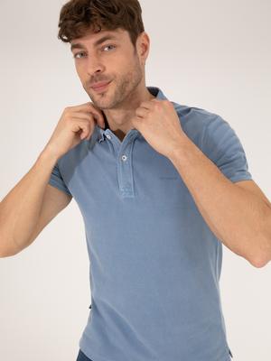 Koyu Mavi Slim Fit Eskitme Polo Yaka Tişört