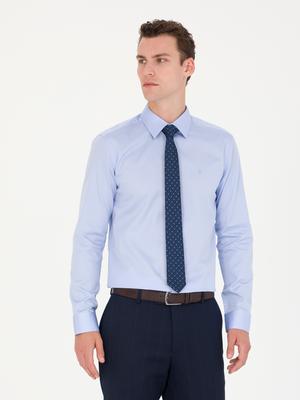 Koyu Mavi Parlak Saten Slim Fit Uzun Kollu Basic Gömlek