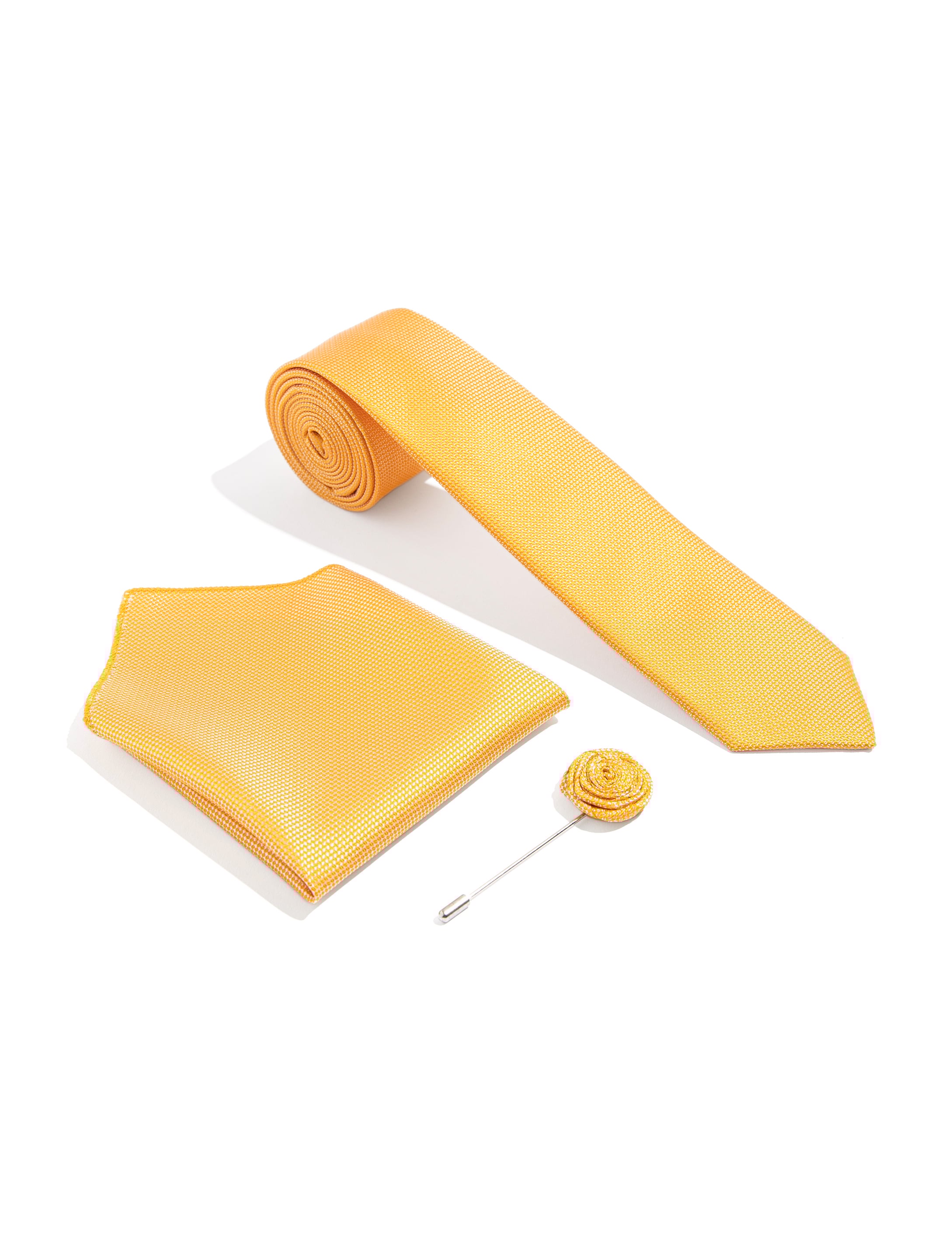 - Sarı 3'lü Kravat-Mendil-Kravat İğnesi Set