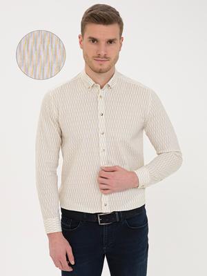 Sarı Keten Karışımlı Regular Fit Uzun Kollu Gömlek