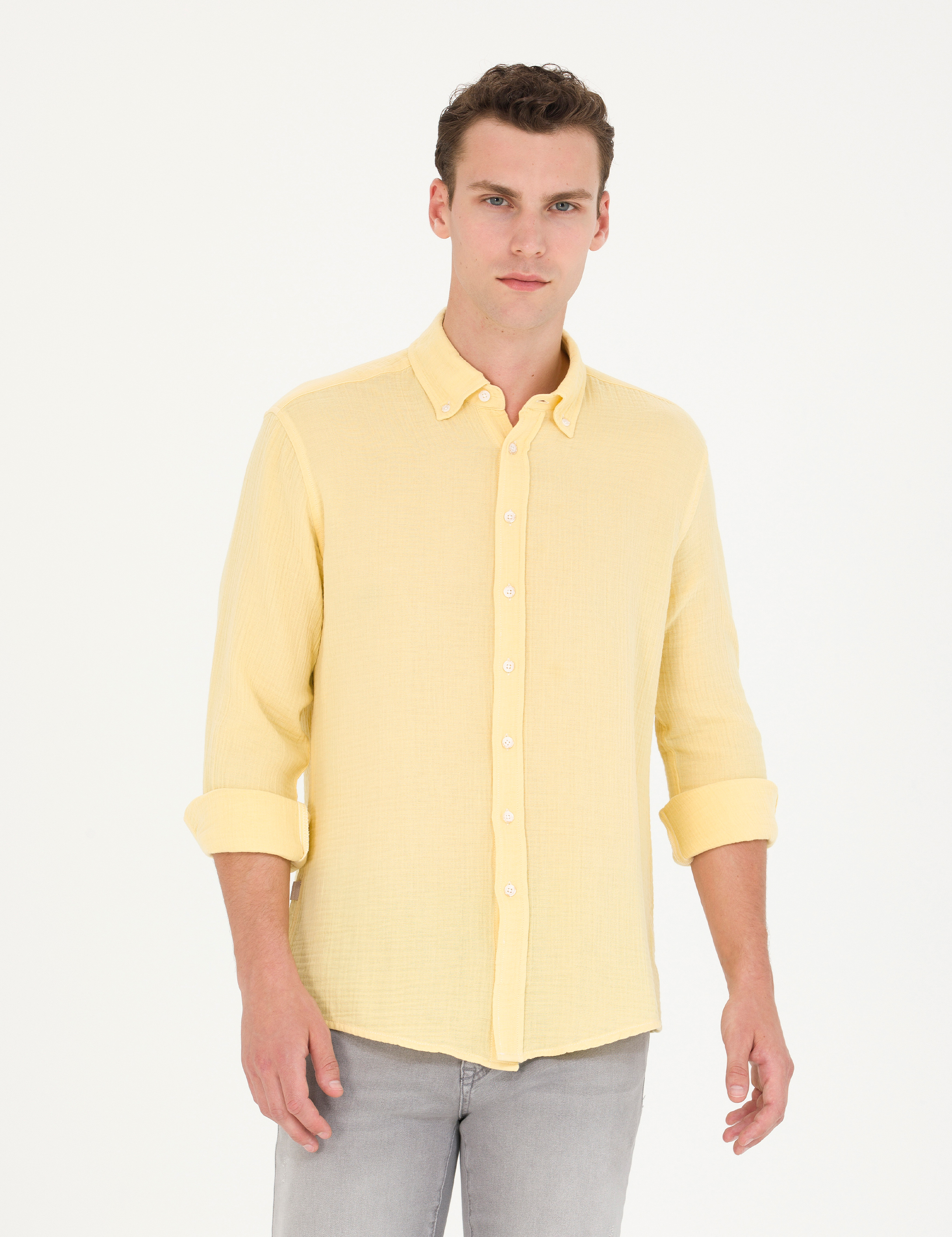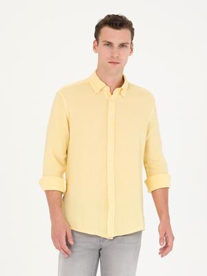 - Sarı Regular Fit Uzun Kollu Gömlek
