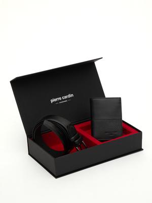 Klasik giyime uygun tasarlanmış kemeri, yumuşak doku cüzdan ile birleştirerek Pierre Cardin set kutularını hazırladık.