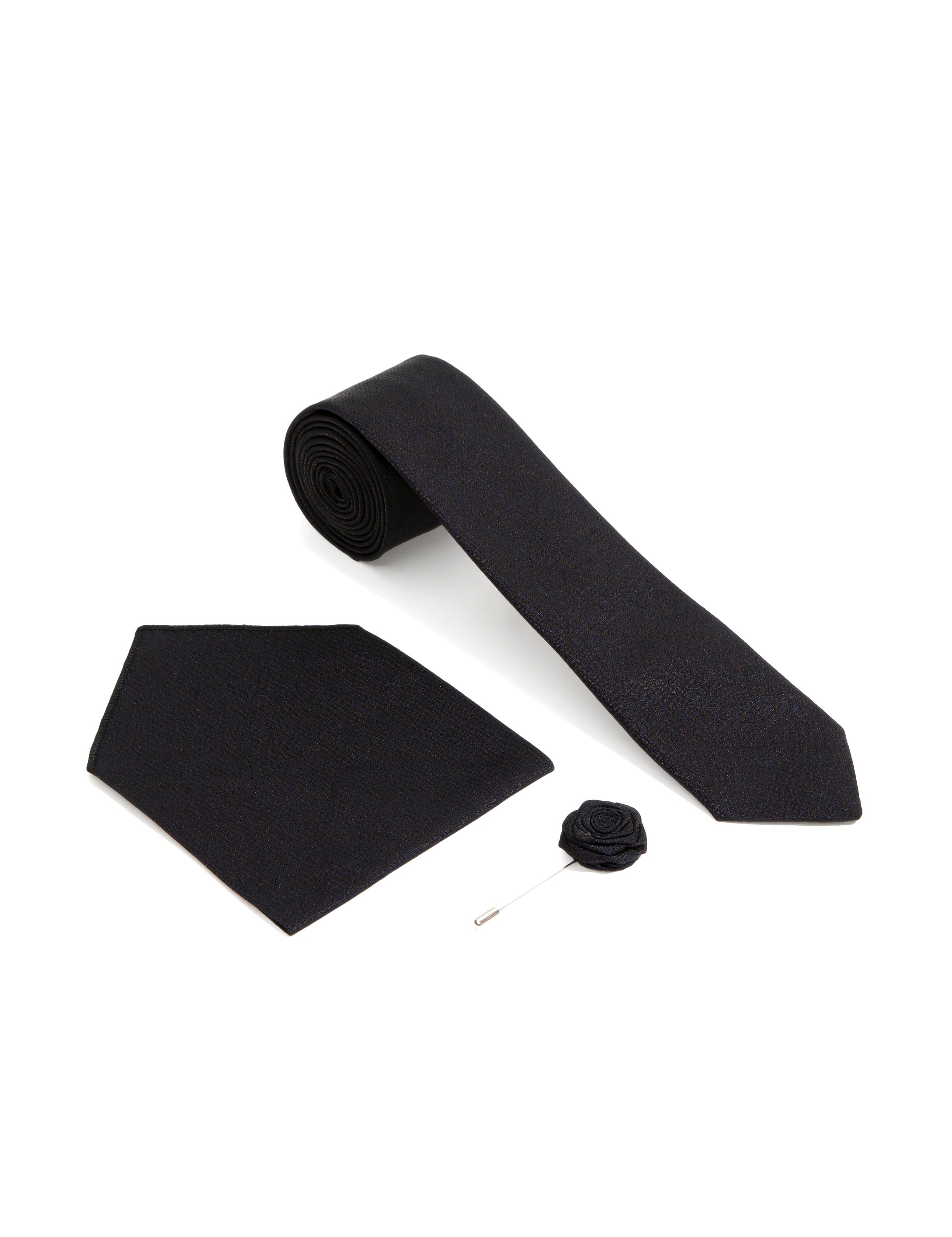 Siyah 3'lü Kravat-Mendil-Kravat İğnesi Set
