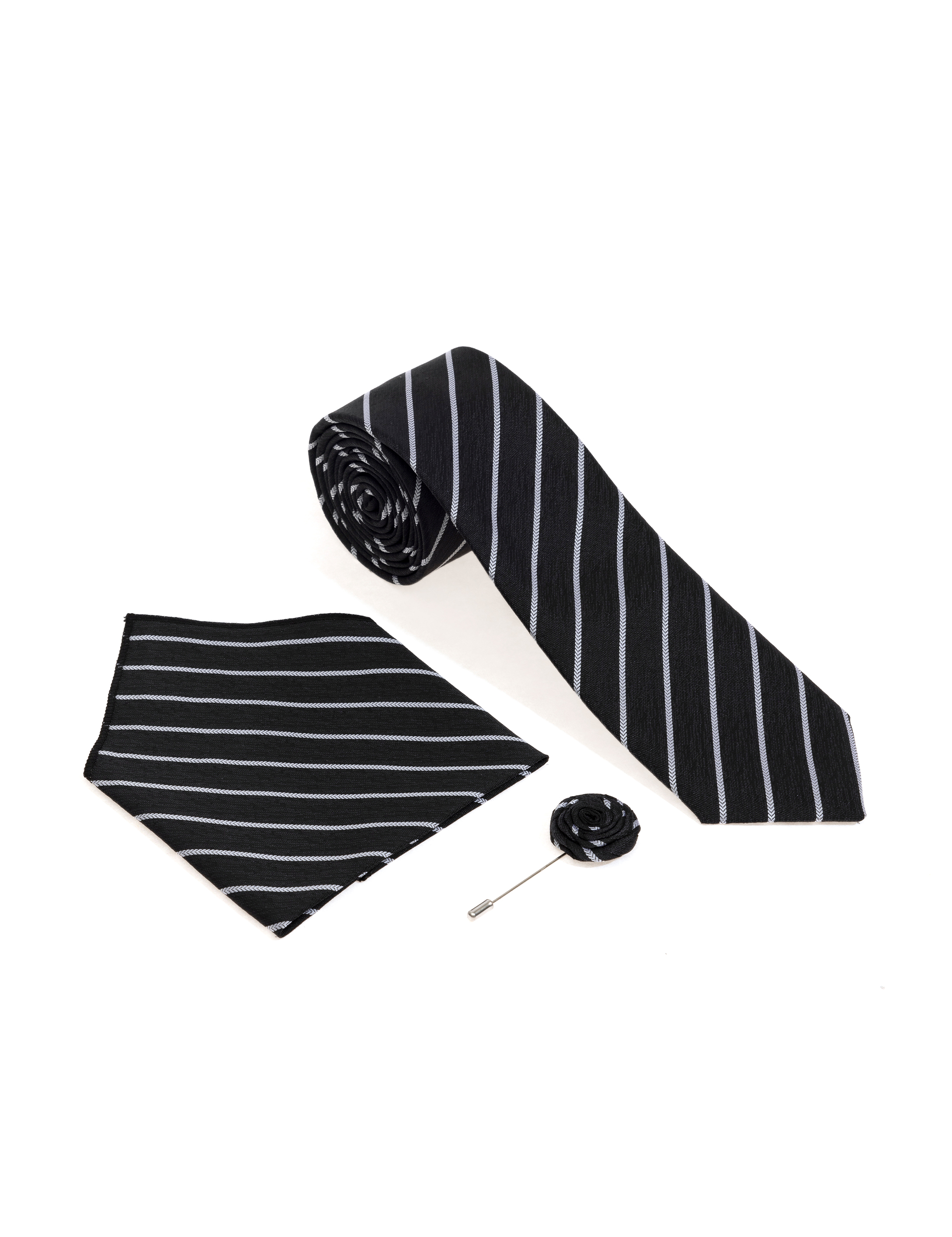 Siyah 3'lü Kravat-Mendil-Kravat İğnesi Set