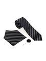 - Siyah 3'lü Kravat-Mendil-Kravat İğnesi Set