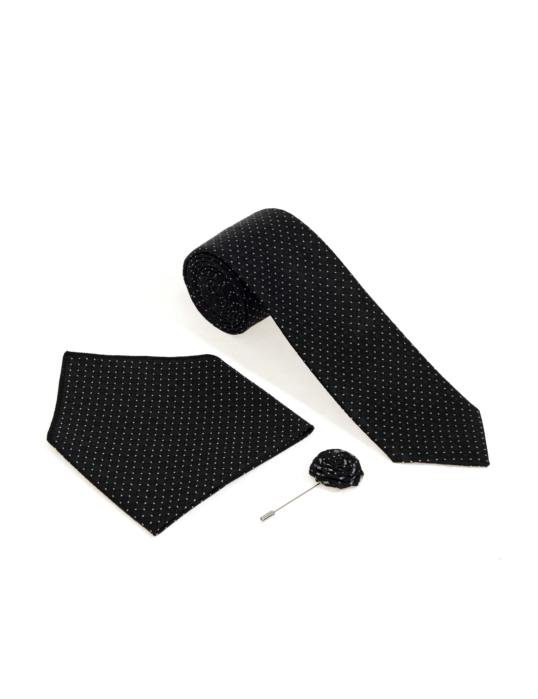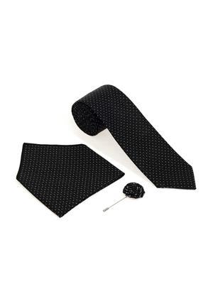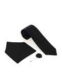 Siyah 3'lü Kravat-Mendil-Kravat İğnesi Set