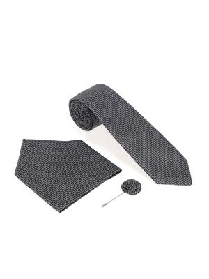 Siyah 3'lü Kravat-Mendil-Kravat İğnesi Set