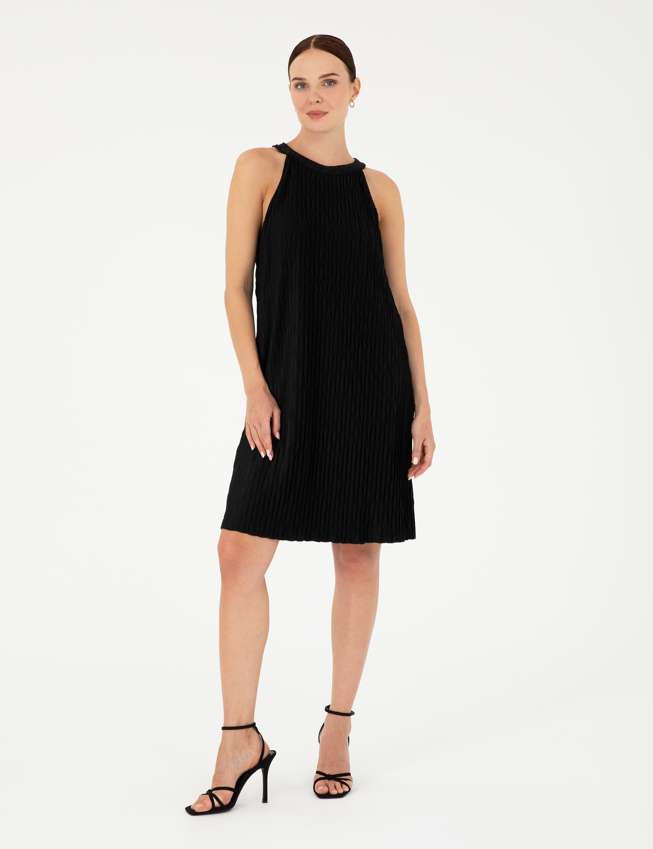 Siyah A Kesim Örme Elbise