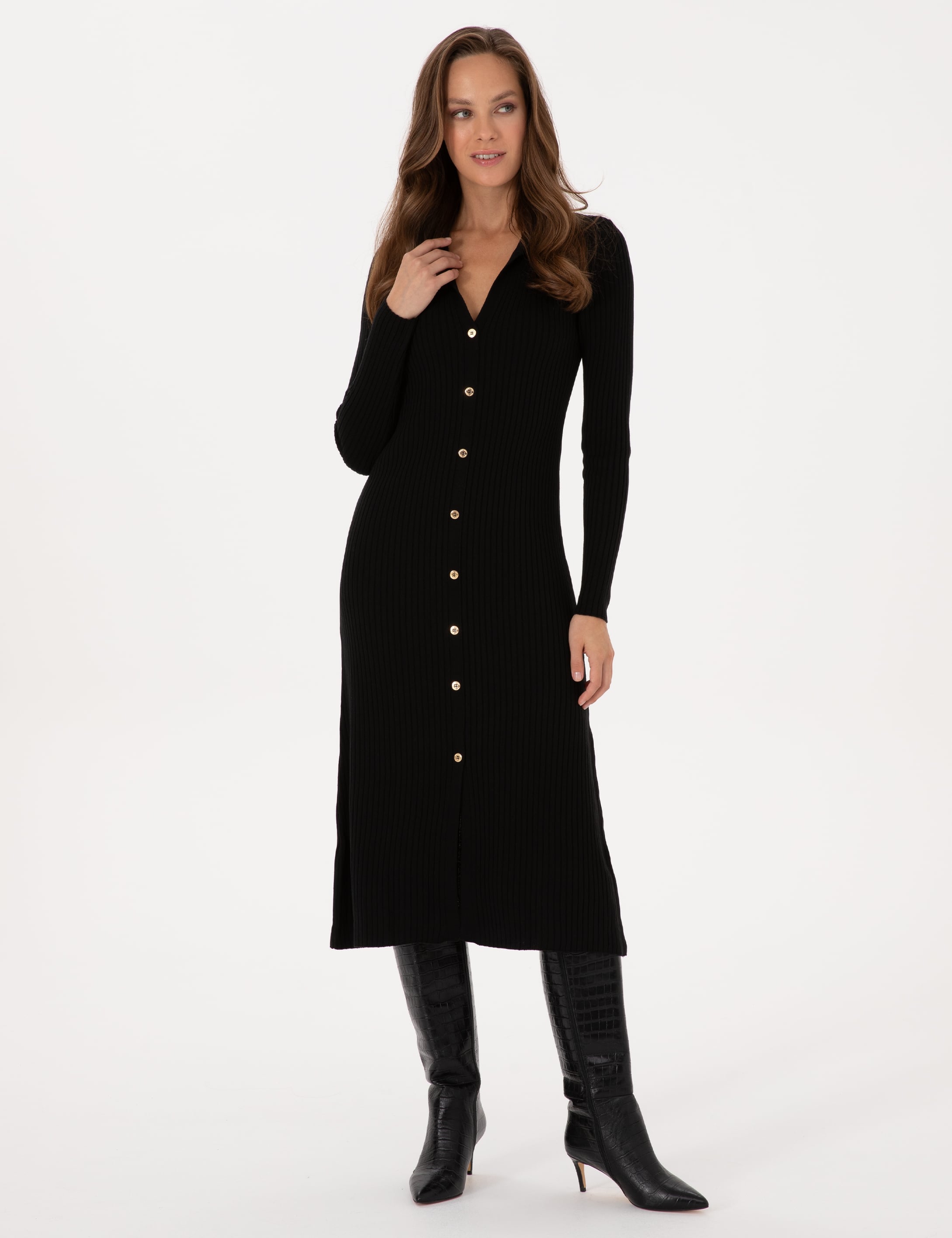 Siyah A Kesim Triko Elbise