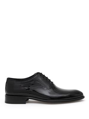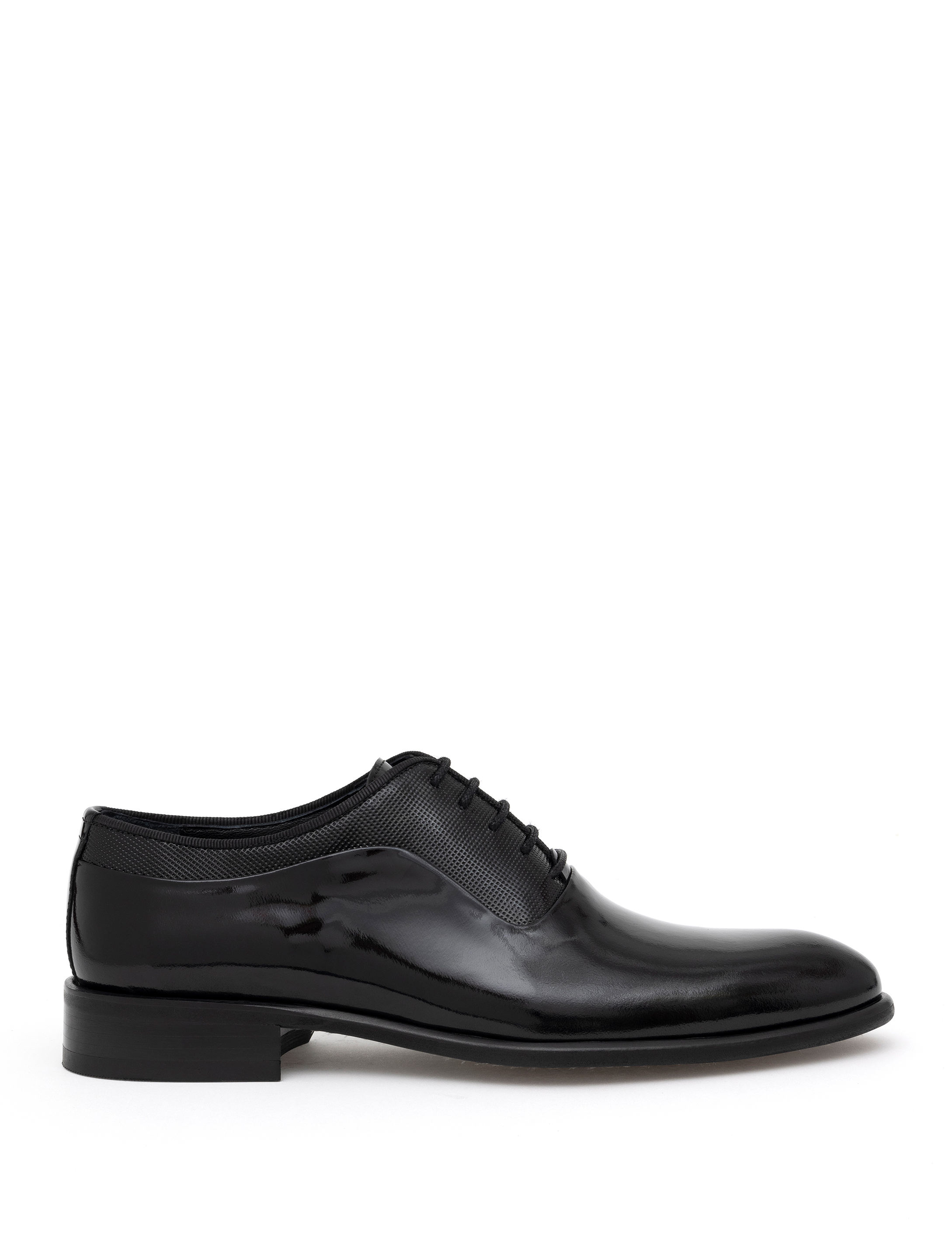 Siyah %100 Deri Damatlık Rugan Klasik Ayakkabı